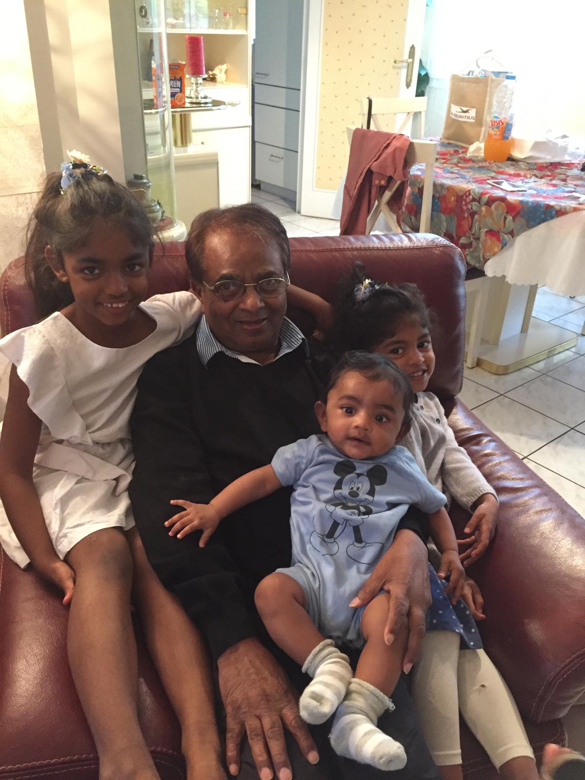 " Un dernier Namaste Om Chacha. Nous allons vous manquer, vous laissez une vide. Votre simplicite et votre gentillesse sera toujours en memoir. Que votre ame soit liberer comme vous retourner dans le bras de Dieu. On vous aime et vous aimerons toujours. Hare Ram Hare Ram Ram Ram Hare Hare "