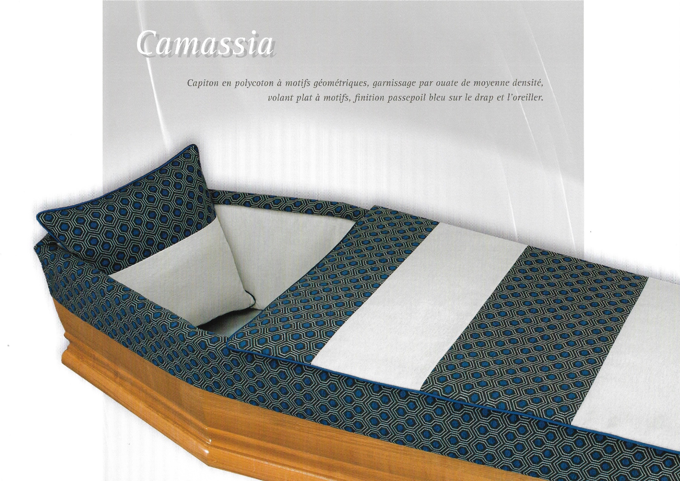 Découvrez l’ensemble de nos capitons funéraires disponibles. Choisissez un modèle qui viendra personnaliser les parois du cercueil et obtenez un devis obsèques ou prévoyance en quelques clics.